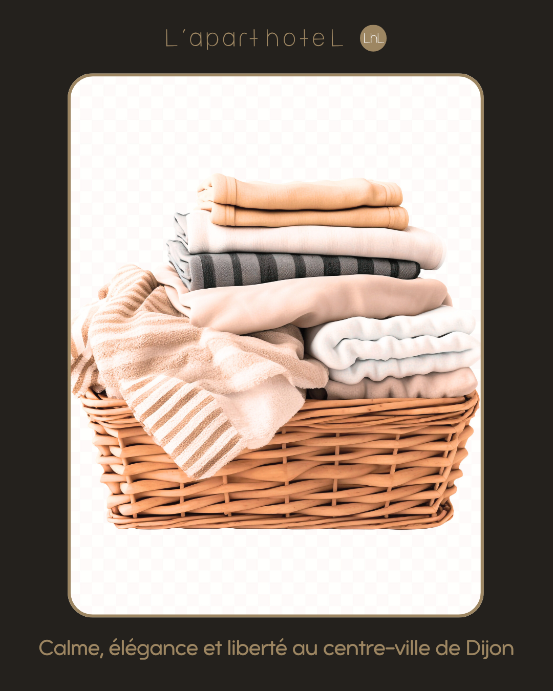 À L’aparthoteL LhL, au cœur de Dijon, nous avons pensé à tout pour alléger votre quotidien. Que vous soyez ici pour affaires ou pour découvrir les trésors de la ville, profitez de notre laverie accessible 24h/24 : machine lavante-séchante, lessive, fer et table à repasser… tout est à votre disposition à toute heure.